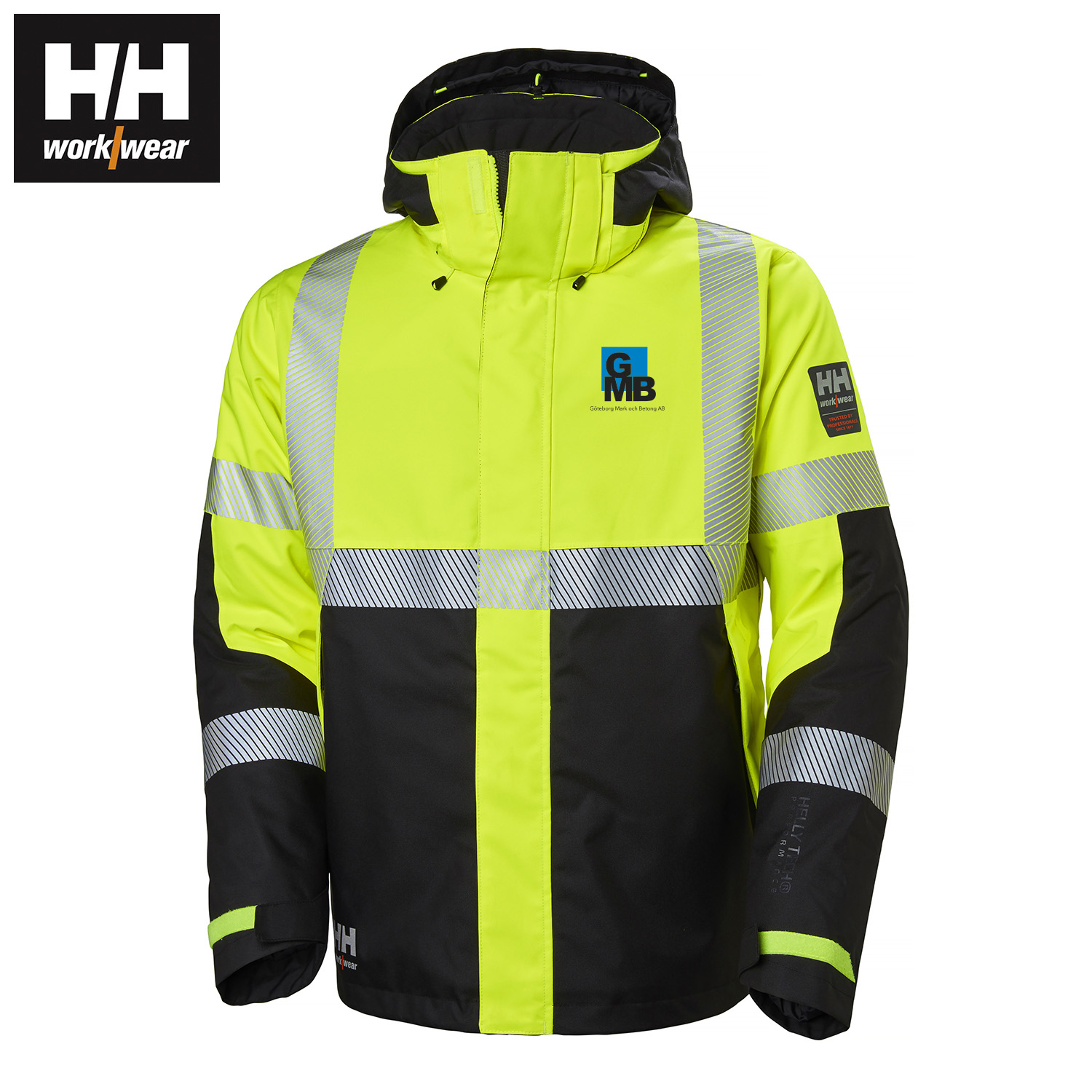 EN ISO 20471 klass 3: Storlek L och uppåt. EN ISO 20471 klass 2: Storlek S – M. EN 343 3,1. EN 342 0,343 m²K/W w/byxor 71494 och 71495. Luftgenomträngning klass 3. Helly Tech® Performance. H2Flow™-teknik. Primaloft® Black Eco-isolering. Vattentät, vindtät och ventilerande. Heltejpad konstruktion. Avtagbar huva. Vertikal och horisontell huvjustering. Kragjustering bak på mitten. Vadderad krage för extra komfort. Borstad polyester på inre krage. YKK®-dragkedja fram med hakskydd. Stormklaff fram. Framfickor med YKK®-dragkedja. Framfickor med borstat foder. Life Pocket™. YKK®-dragkedja för ventilering under armarna. Inre bröstficka. Innerficka. Dragkedja. Förböjda ärmar för optimal rörlighet. Justerbara muddar. Invändig elastisk mudd. Justerbar fåll med elastisk dragsko inuti. Ögla för ID-kort. Förlängd rygg för förbättrad komfort. Reflekterande detaljer. 360-graders 3M™ skurna-reflexer på bål, ärmar och axlar.